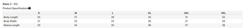 Sizing guide