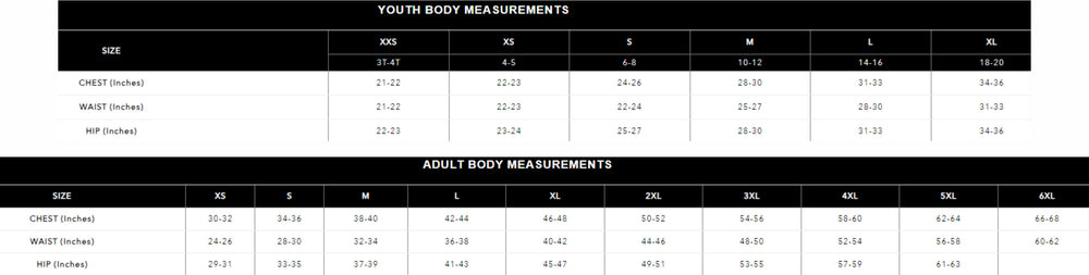 Due to the custom nature of the product, we do not accept any returns or exchanges. Please take care when selecting your size by utilizing the sizing guides or contacting us for help.